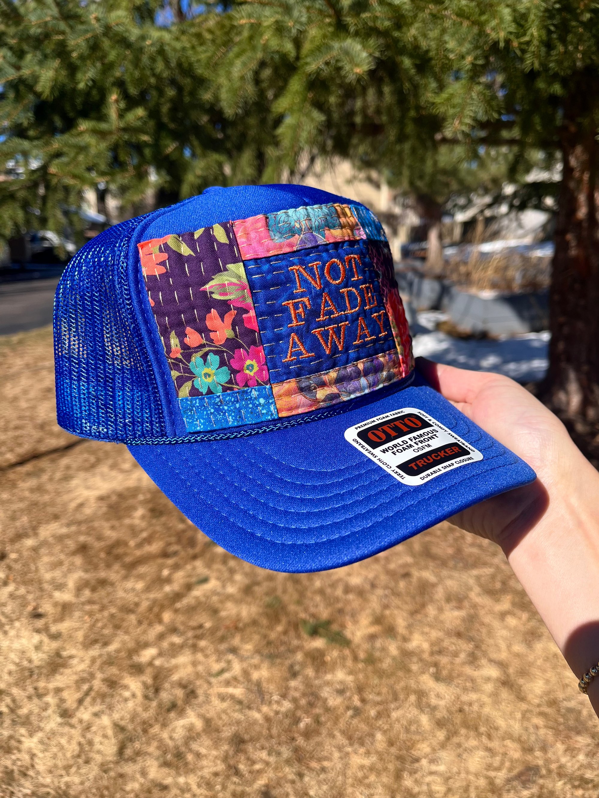 Blue Otto brand foam trucker hat with a SnapBack closure for an adjustable fit - yes, even the big noggin’ folks! :-)